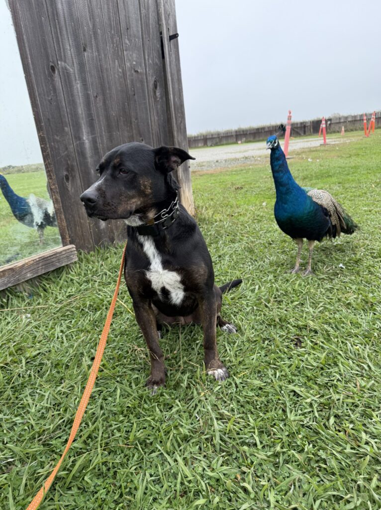 Luna is about five years old, delightfully energetic, and would thrive as the one and only royal pet in your domain. She respects ranch royalty like myself and the other large creatures here… but when it comes to other dogs? She prefers not to share her throne. Cats are strictly forbidden from her court.